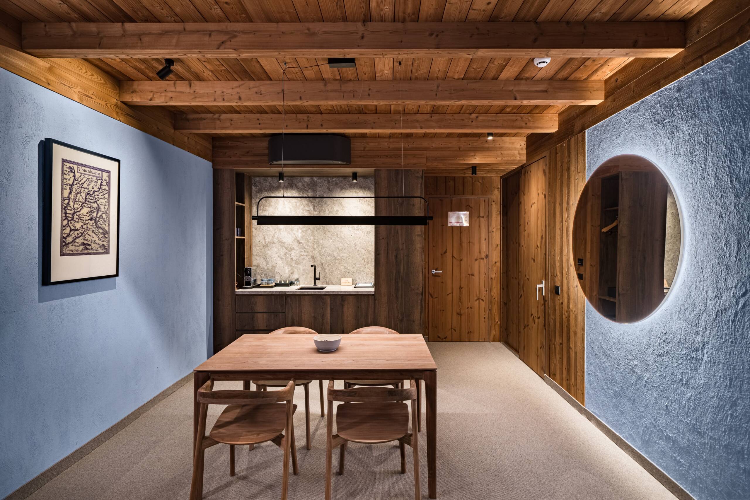 Das Design unseres Hotels ist eine harmonische Verbindung aus Moderne und kulturellem Erbe. Ein zentrales Element des visuellen Konzepts sind echte Fragmente einer alten Karte Siebenbürgens aus dem Jahr 1572, gezeichnet vom berühmten deutschen Kartografen Sebastian Münster.