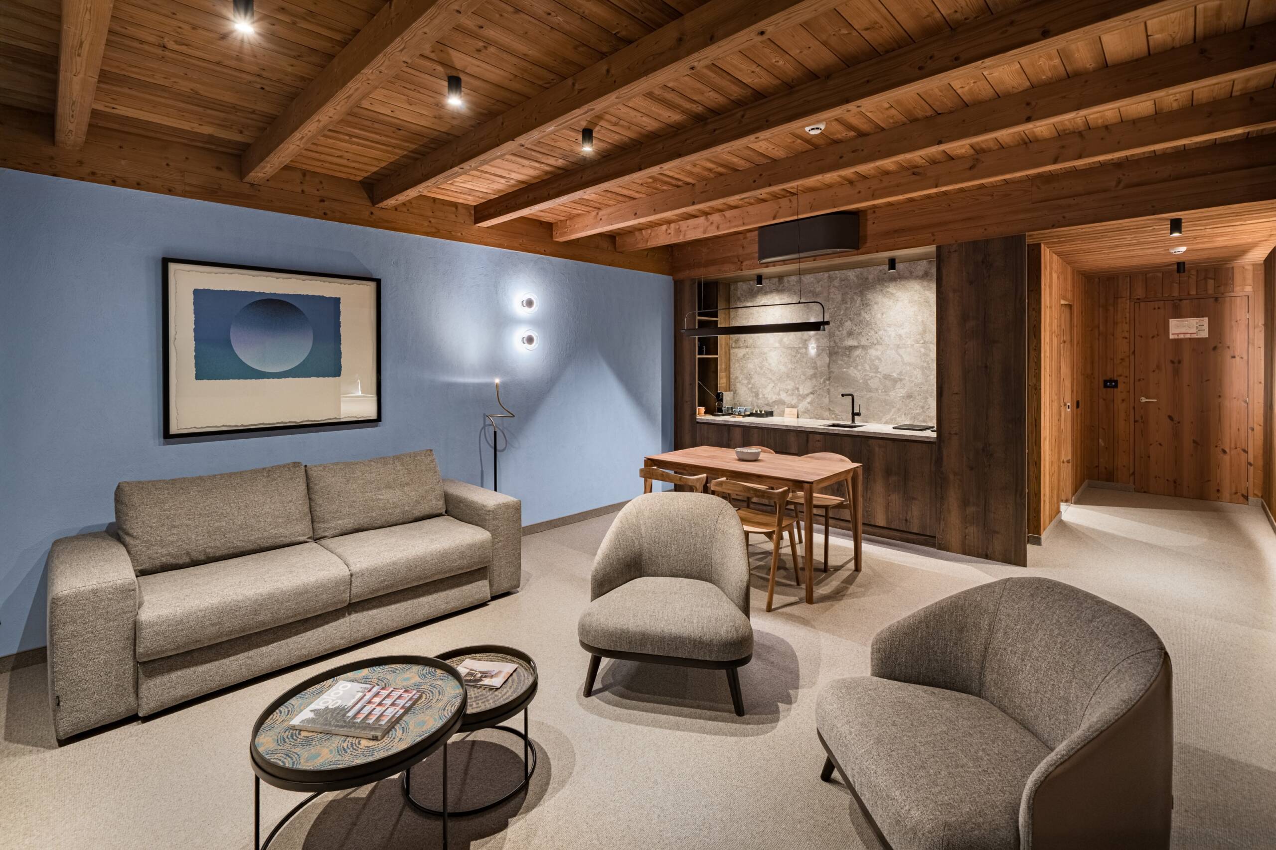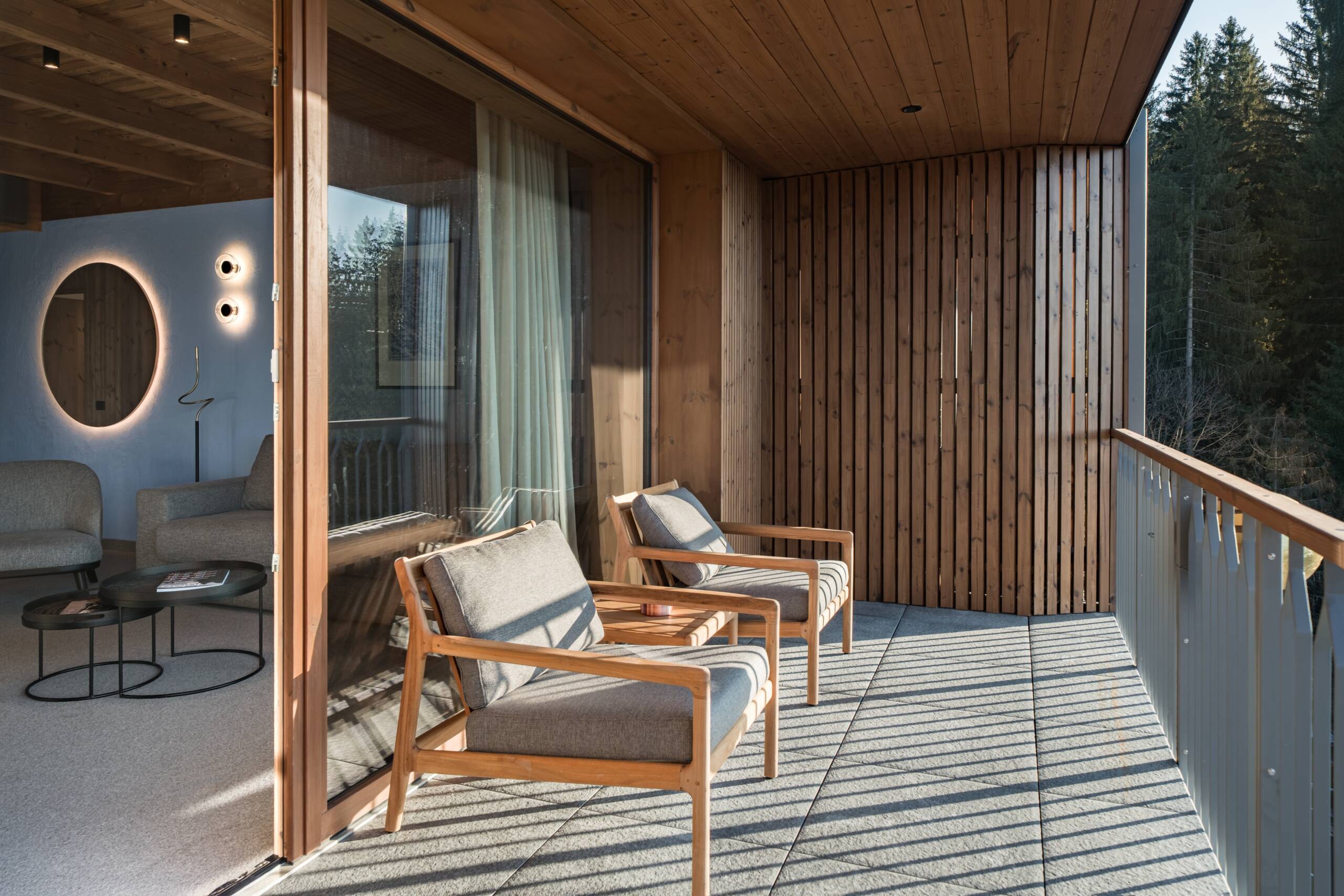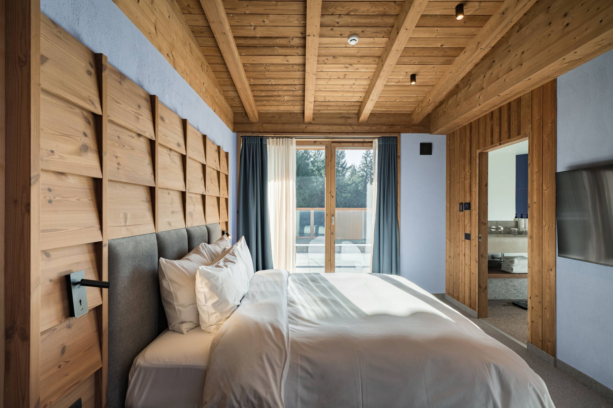 MIirosul multisenzorial din hotel, perceptibil imediat ce pășești în lift, este o componentă esențială a atmosferei relaxante de la Swissôtel Poiana Brașov. Lemnul folosit în design este un pin nordic modificat termic, provenit din surse sustenabile. Procesul brevetat de modificare termică oferă lemnului o durabilitate și stabilitate excepționale, păstrând în același timp un parfum natural, asemănător pădurii, cu note de miere și flori. Thermowood este adesea folosit în proiecte arhitecturale ecologice datorită rezistenței sale la condiții meteo severe. Lambriurile din camere sunt realizate cu profile rustice Luna Layer.